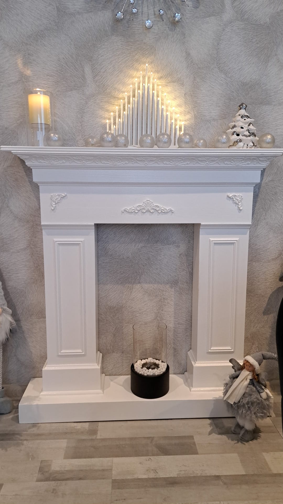 Dekoratīvais sveču kamīns ir roku darbs un ir izgatavots no koka. Krāsots ar spīdīgu ūdens bāzes akrila emaljas krāsu, kas padara kamīnu viegli kopjamu. Pasūtot pēc individuālām vēlmēm, krāsu ir iespēja izvēlēties. Sveču kamīns ir ļoti izturīgs un stabils.